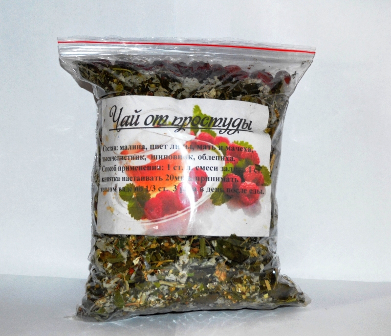 малина, цвет липы, мать-и-мачеха, тысячелистник, шиповник, облепиха.